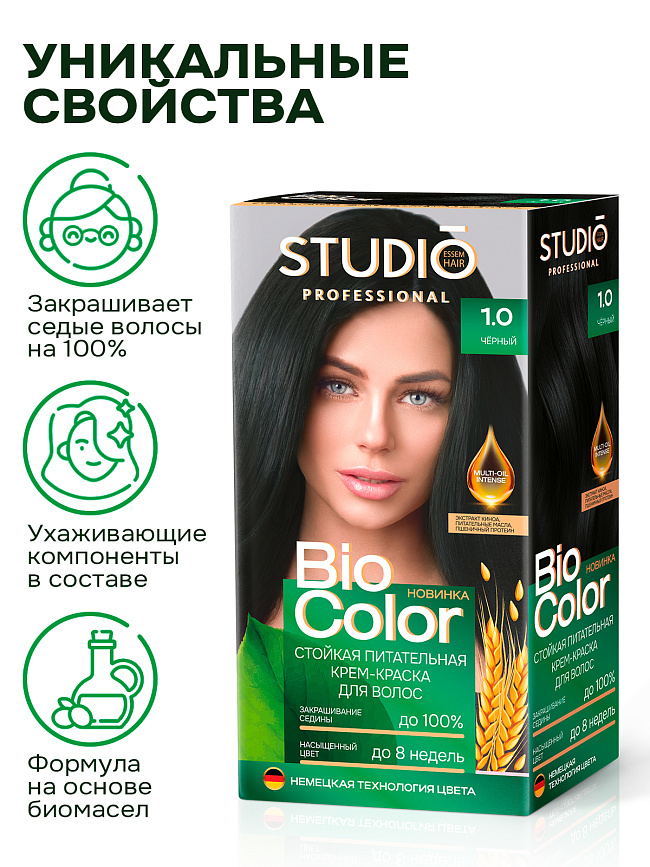 Таинственный черный оттенок придаст выразительности вашему образу! Формула питательной крем-краски с комплексом Multi - Oil Intense глубоко проникает в структуру волоса, обеспечивая равномерное окрашивание, максимальное закрашивание седины, стойкость цвета до 8 недель и насыщенный трехмерный блеск по всей длине.