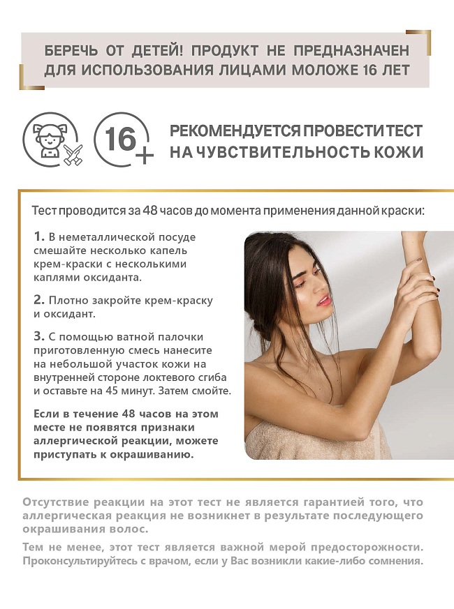 Тест проводится за 48 часов до момента применения данной краски, даже если Вы уже пользовались окрашивающими средствами:
