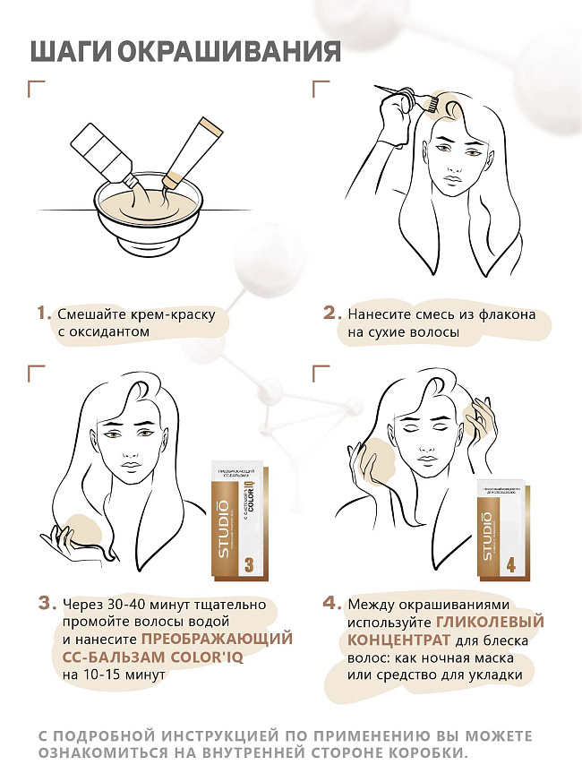 - При первом применении краски на длинные волосы рекомендуется использовать 2 упаковки.