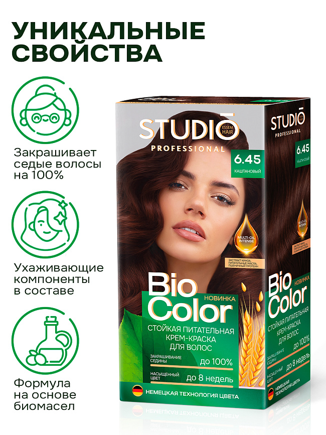 Благородные каштановые оттенки всегда актуальны. Великолепный натуральный цвет надолго. В составе Biocolor: Натуральные масла авокадо, оливы, льна и ши защищают и питают волосы во время всей процедуры окрашивания. Витамины E, F, B5 предотвращают ломкость кончиков, придают волосам блеск и силу, благотворно влияют на кожу головы. Кератиновый комплекс преображает и выравнивает поверхность волос.