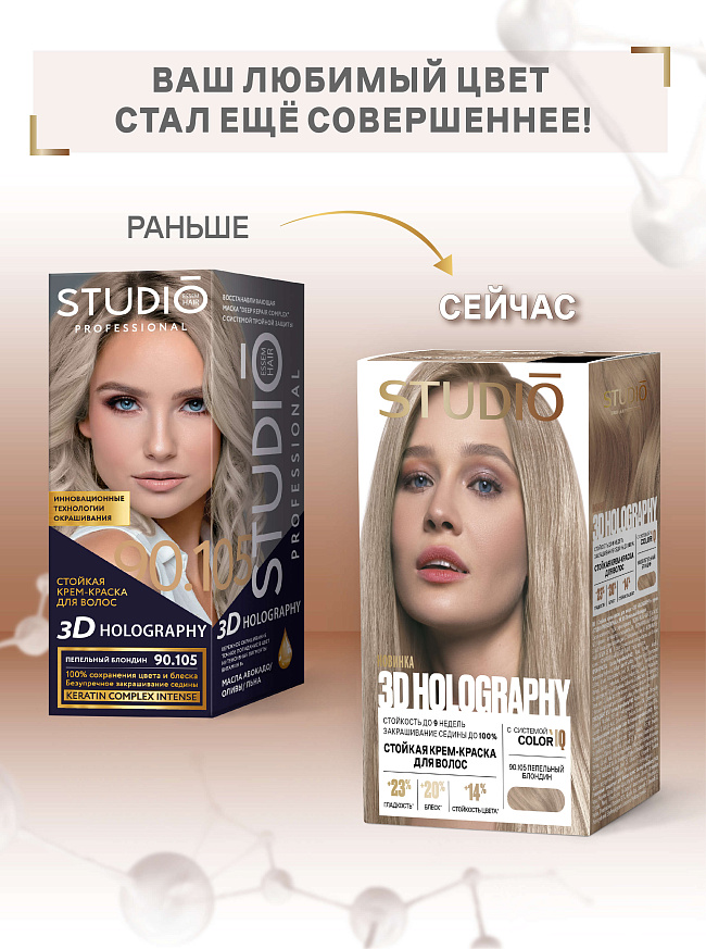 Объединив передовые технологии и мощные активные компоненты, 3D HOLOGRAPHY обеспечивает профессиональное окрашивание в домашних условиях.