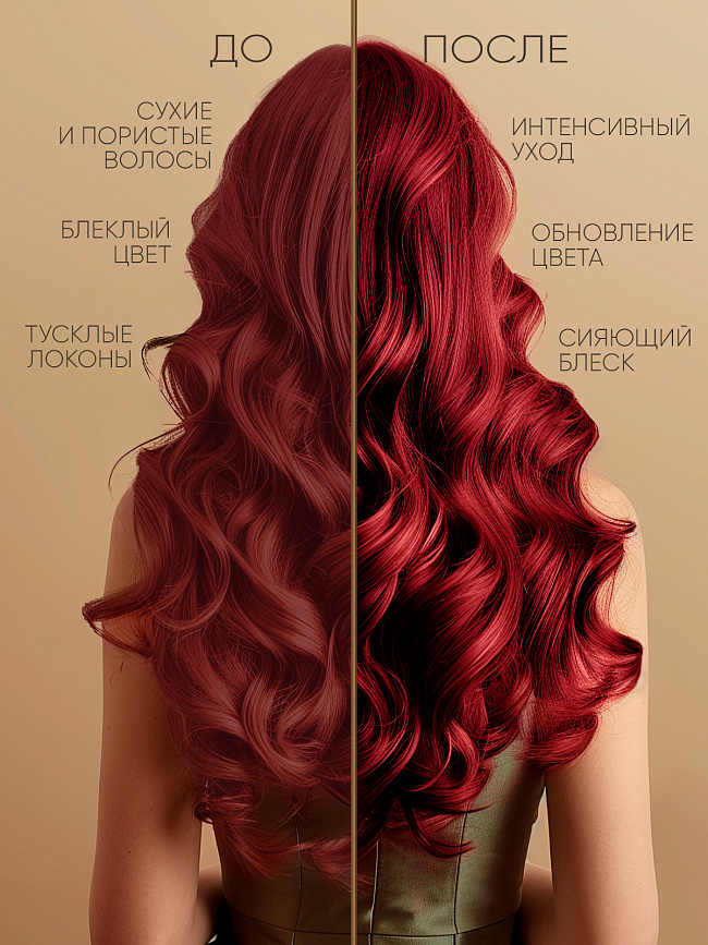 Оттеночная глоссер-маска "Красный гиацинт" предназначена для оживления цвета волос красных и винных оттенков, между окрашиваниями стойкой перманентной или стойкой безаммиачной краской. Также возможно применение на натуральных волосах, для усиления глубины тона и придания им сияния. Инновационная формула обновления цвета и интенсивного восстановления волос всего за 5 минут: сияющий блеск, яркий цвет, увлажнение, гладкость и эластичность
