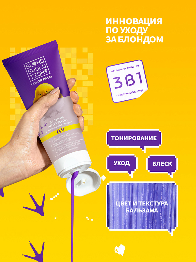Оттенок цыпленка на флаконе расскажет о твоем будущем блонде все! Используй Платиновый блондин для обновления своего цвета или для совершенно нового преображения. Бальзам обеспечит увлажнение, легкое расчёсывание и уберёт пушистость. УЛЬТРА ОБНОВЛЕНИЕ ДЛЯ ЛЕДЯНЫХ ОТТЕНКОВ БЛОНД. Нейтрализация желтизны и глянцевый блеск. Бальзам с прямыми пигментами.