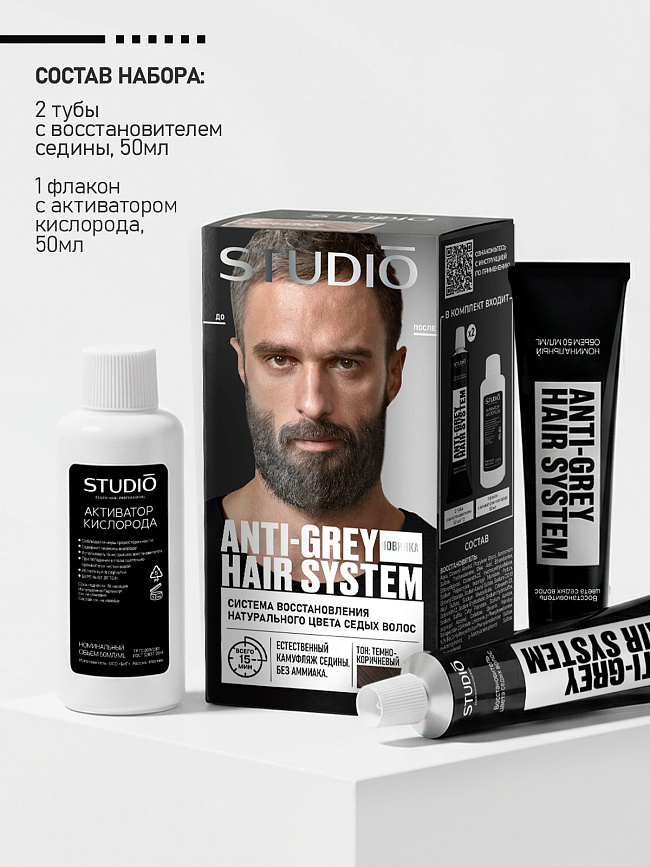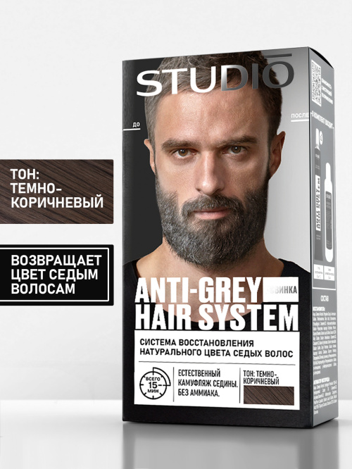 STUDIO MEN Система восстановления натурального цвета седых волос «ANTI-GREY HAIR SYSTEM» Темно-коричневый