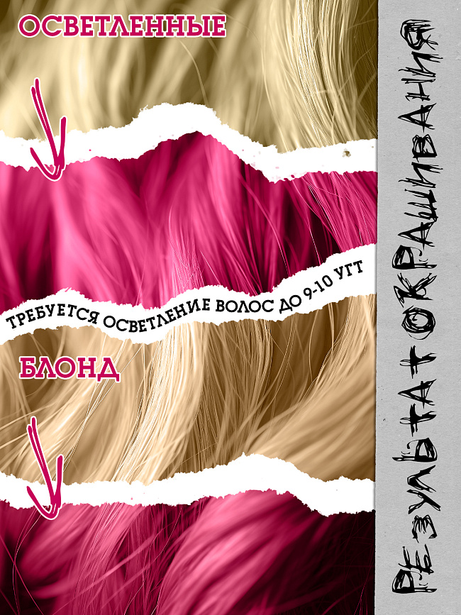 Для волос 7 УГТ и ниже (от русого до брюнета) требуется предварительное осветление. Максимальный результат от применения оттеночного средства Bad Girl ты получишь на светлых, очень светлых или предварительно осветленных до 9-10 УГТ волосах.