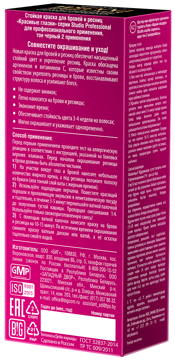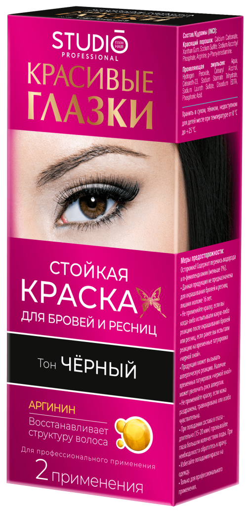 Стойкая краска для бровей и ресниц Красивые глазки, Черный 2 применения