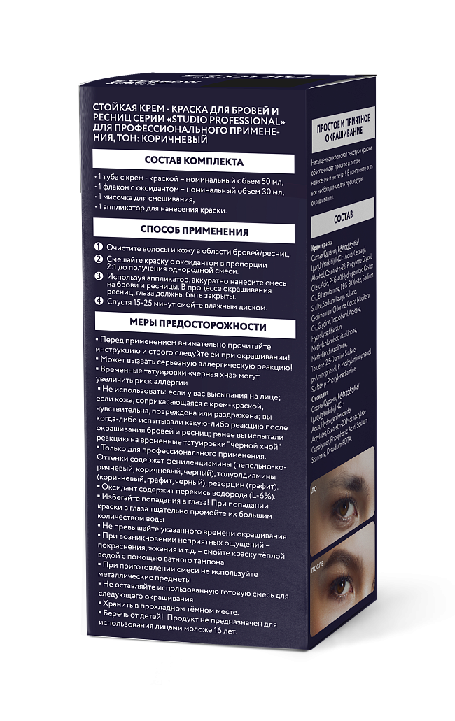 Внимание! Перед окрашиванием проведите тест на аллергическую реакцию! Только для окрашивания бровей!