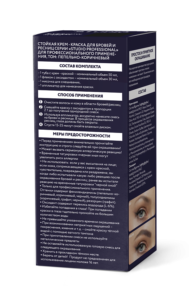 Стойкая крем-краска для бровей и ресниц Пепельно - Коричневая